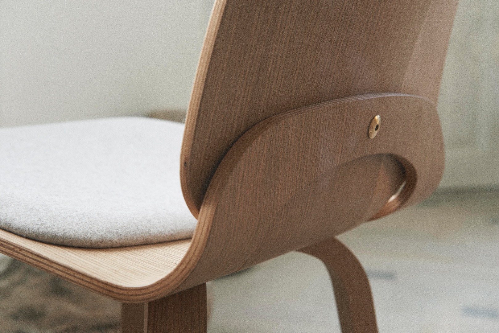 Der Viggo-Stuhl besteht aus zwei separaten Holzschalen, die sowohl außergewöhnlichen Komfort als auch ein einzigartiges Erscheinungsbild bieten, das ihn von anderen Stühlen abhebt. Es ist die Art und Weise, wie Rückenlehne und Sitz nahtlos zusammengeführt werden, die für unvergleichliche Flexibilität und Bequemlichkeit sorgt. Mit einer einzigen sichtbaren Messingschraube, die Sitz und Rückenlehne verbindet, verleiht der Stuhl eine ehrliche und zeitgemäße Ästhetik, die sowohl funktional als auch visuell ansprechend ist. Dieses Detail unterstreicht nicht nur die handwerkliche Qualität, sondern auch die moderne Formensprache, die ihn für private und professionelle Umgebungen geeignet macht.